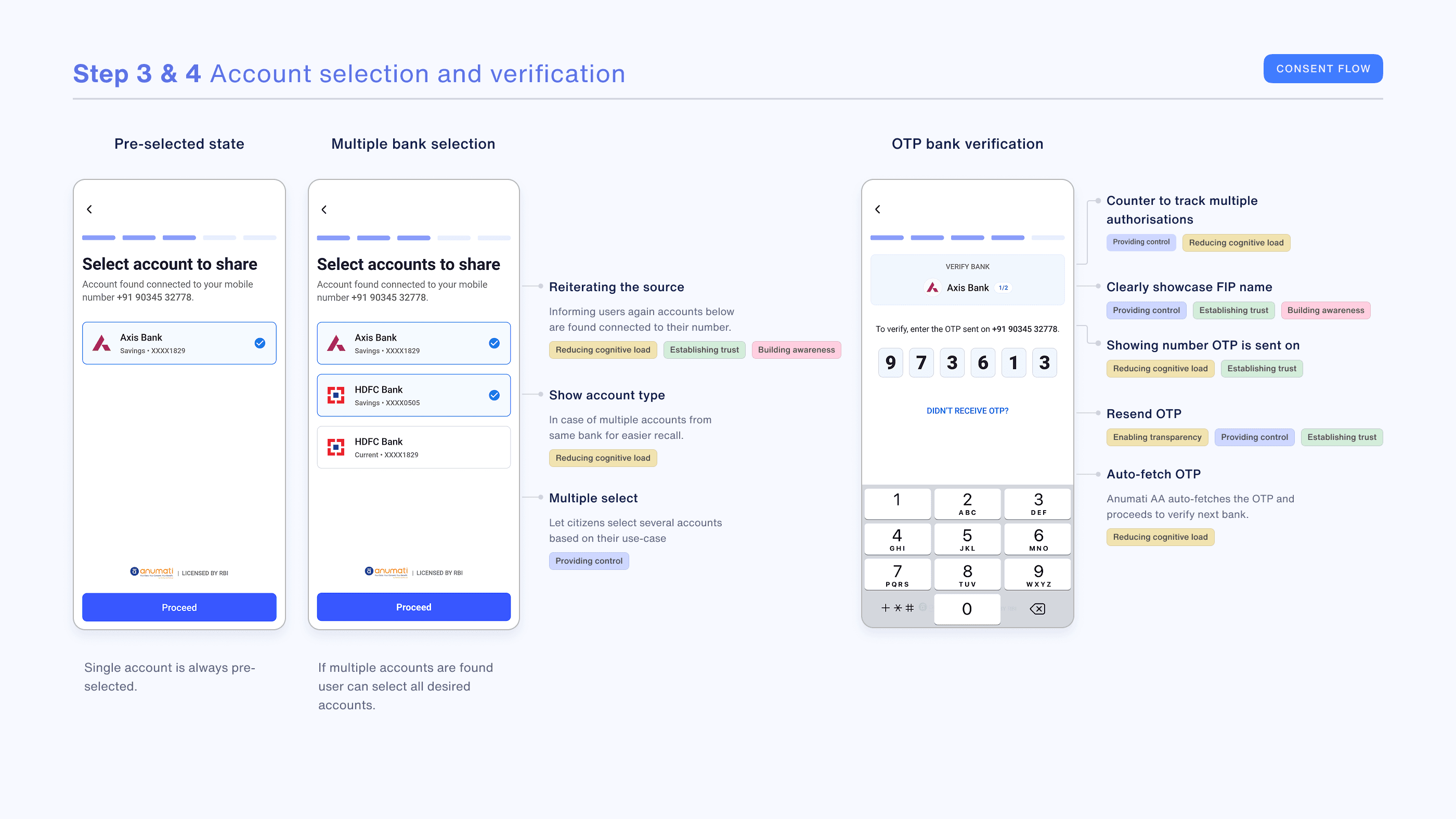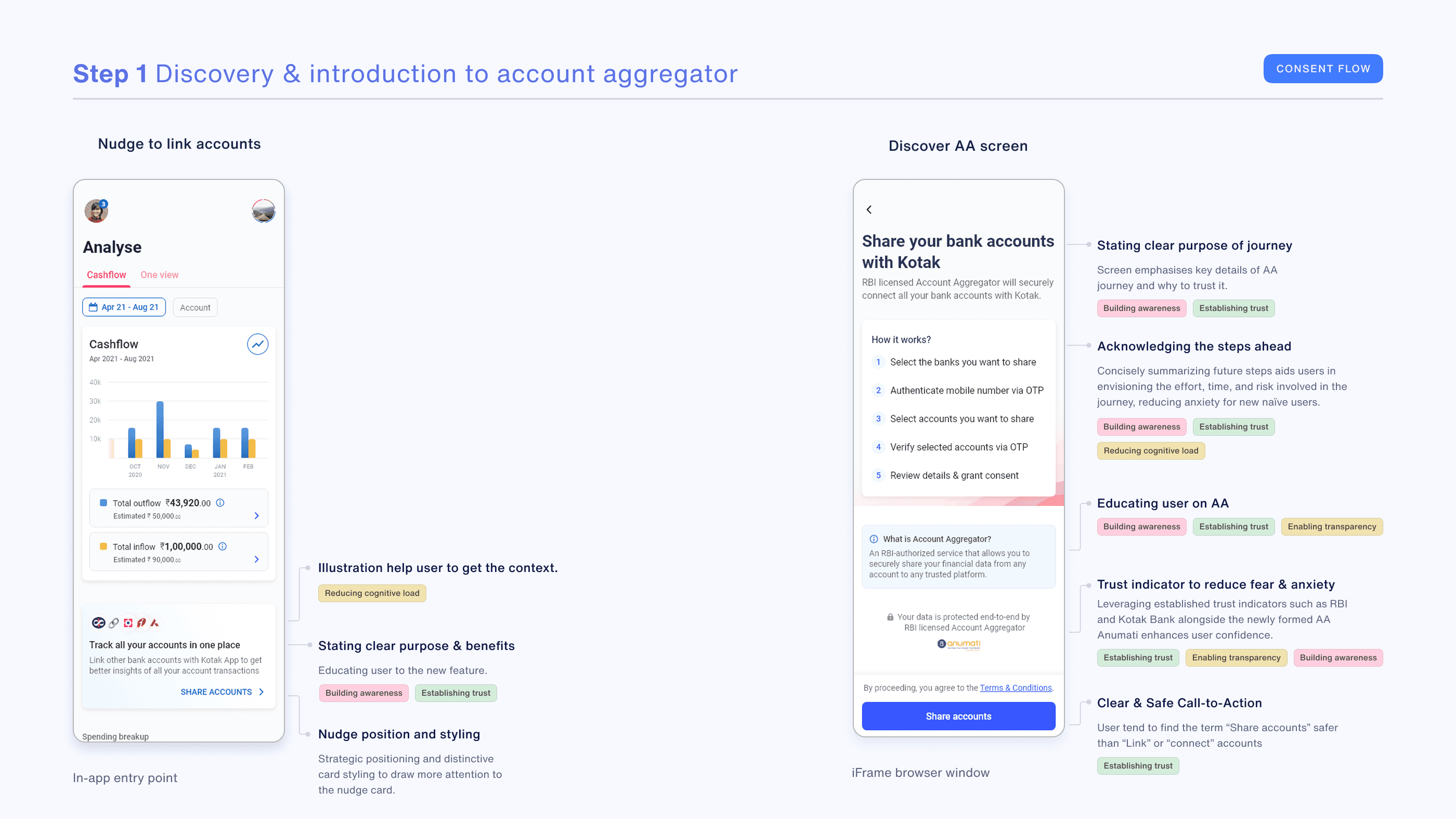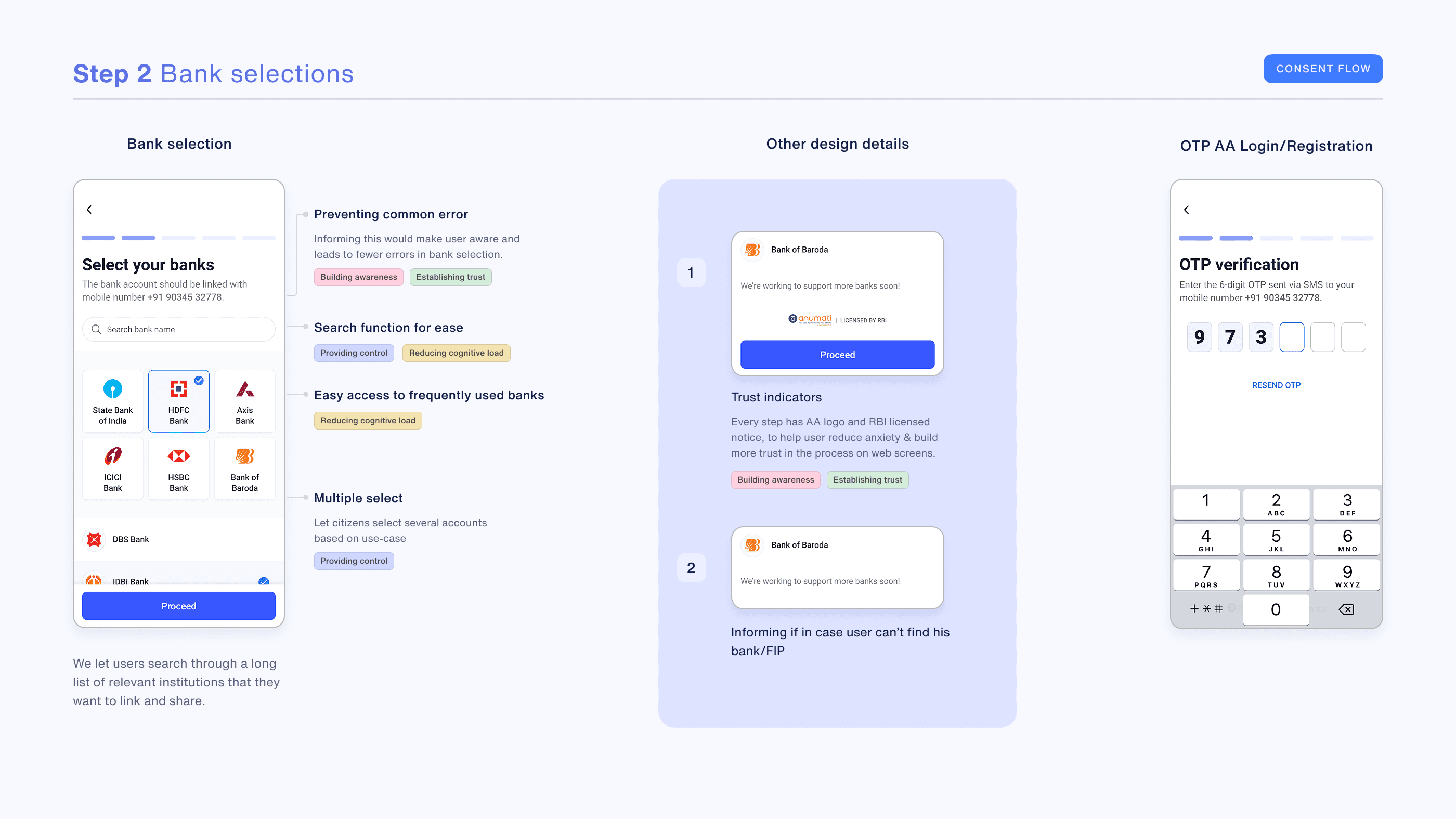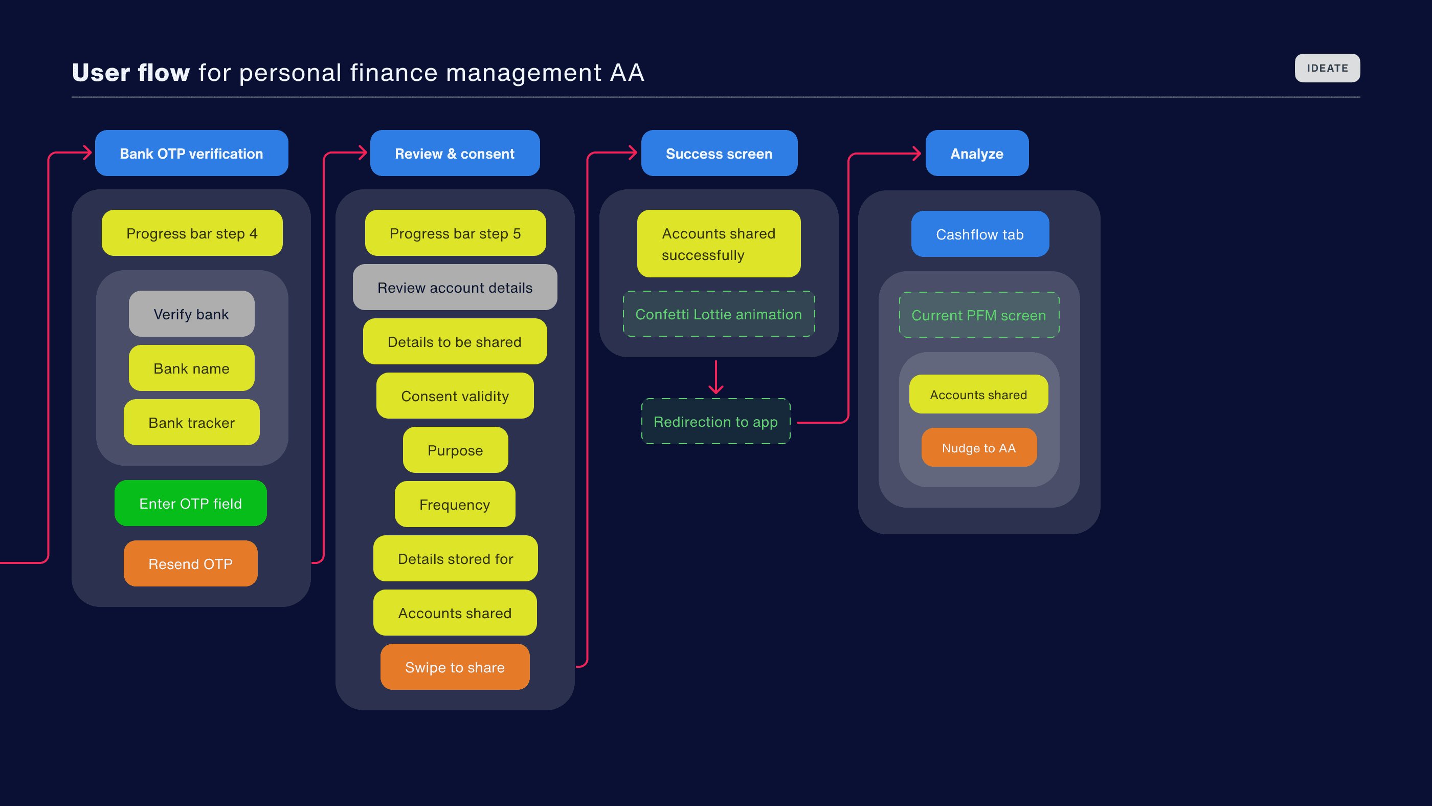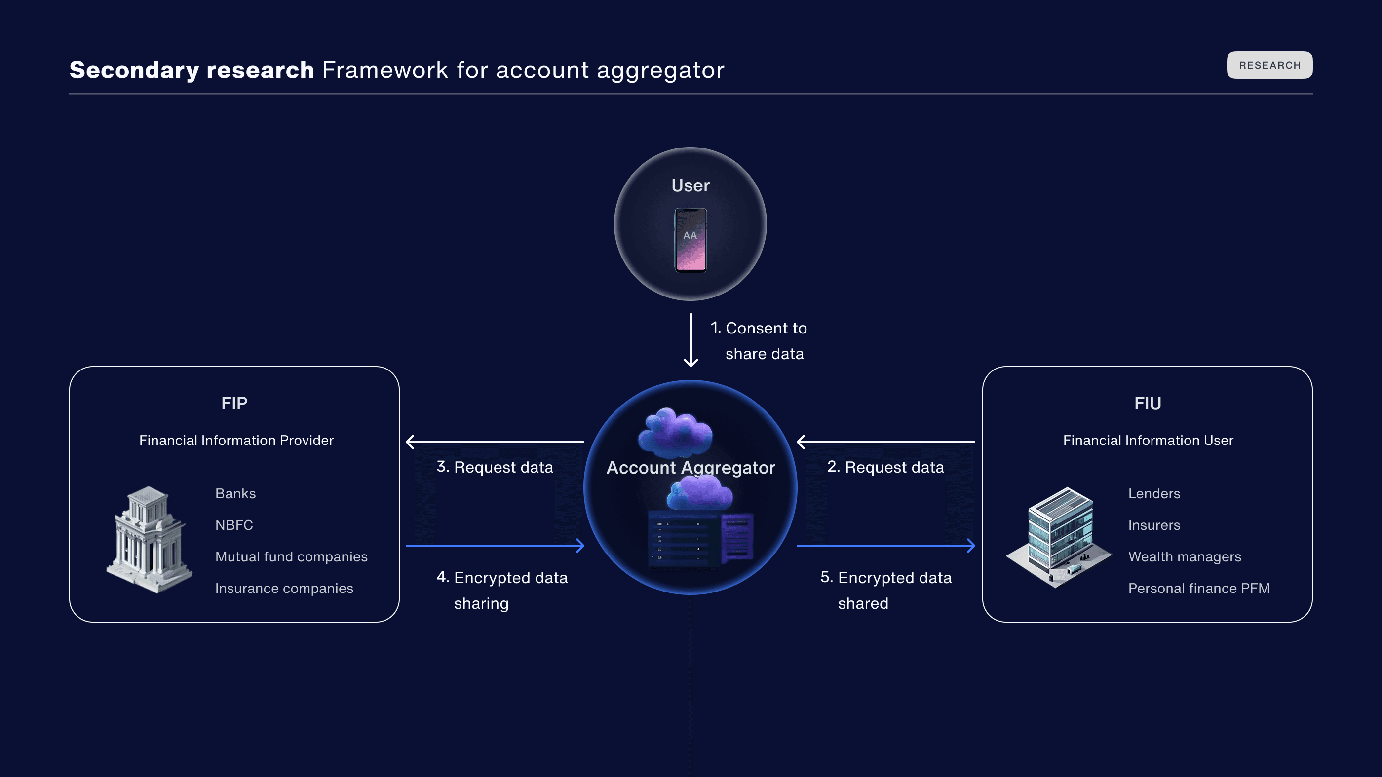 Account Aggregators — Architecting a seamless fintech user flow to facilitate financial data sharing with a focus on user consent, security, and transparency.