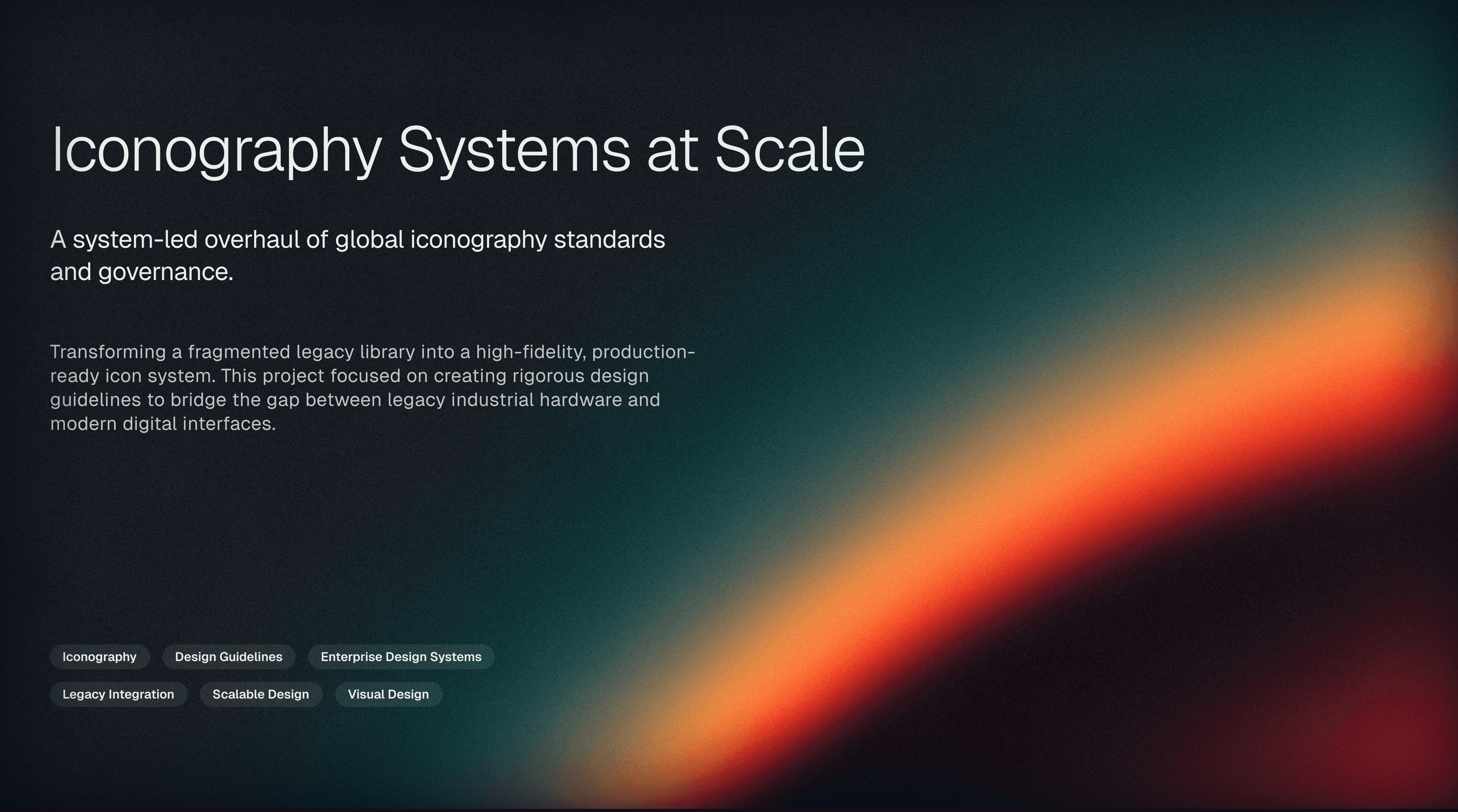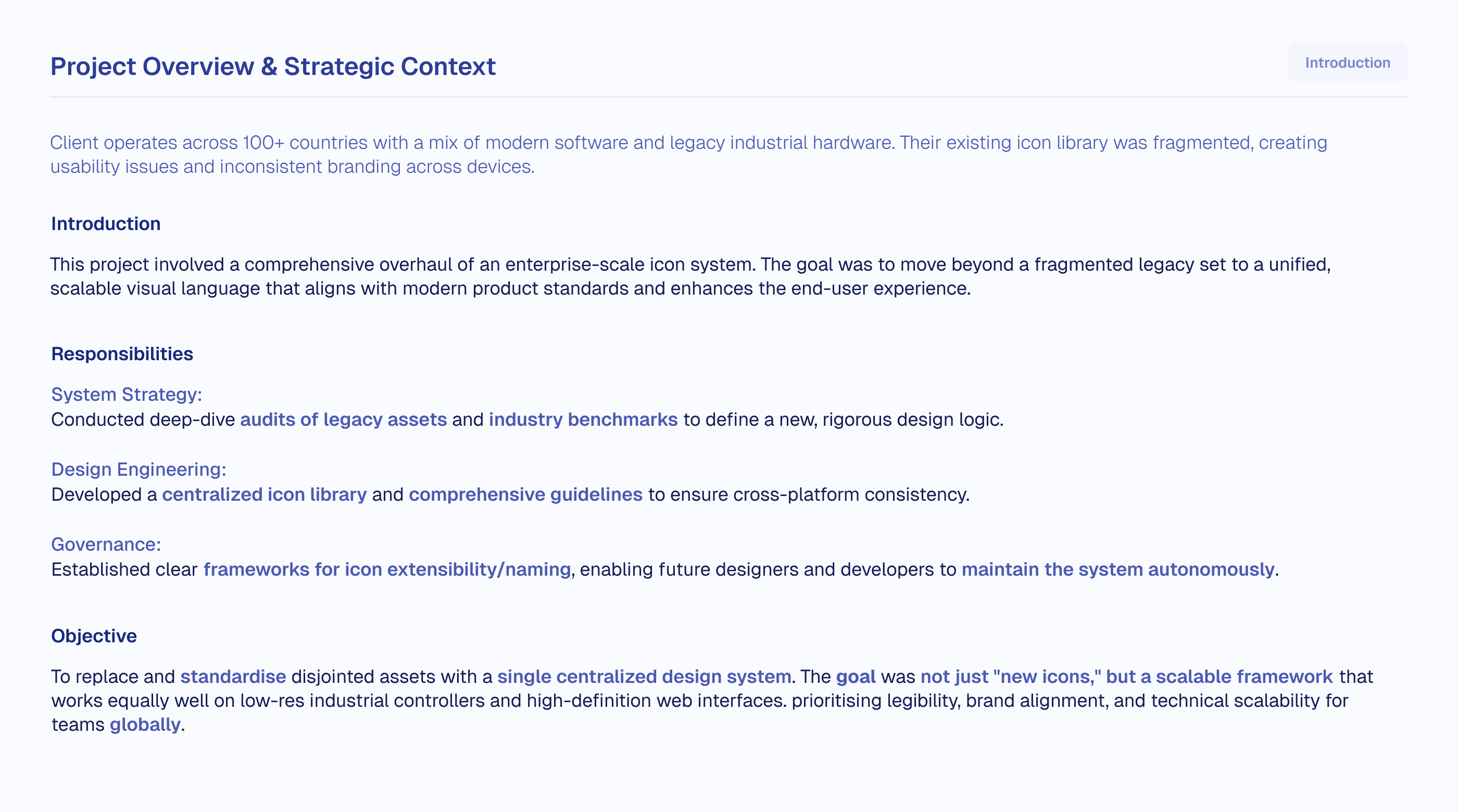 Iconography — Standardising an enterprise scale iconography system with rigorous technical guidelines for global industrial hardware and modern digital software platforms.